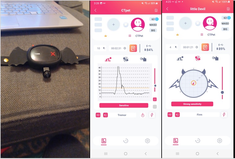 When I mentioned ‘human level’ shocks, I meant to say that while the shocks it administers – which are variable in intensity – are attention getting for sure, they aren’t as brutal as those administered by a dog collar and I speak from experience! I have a permanent scar on my perineum from being badly (and I mean ER visit badly) burned from prolonged use of a dog shock collar.