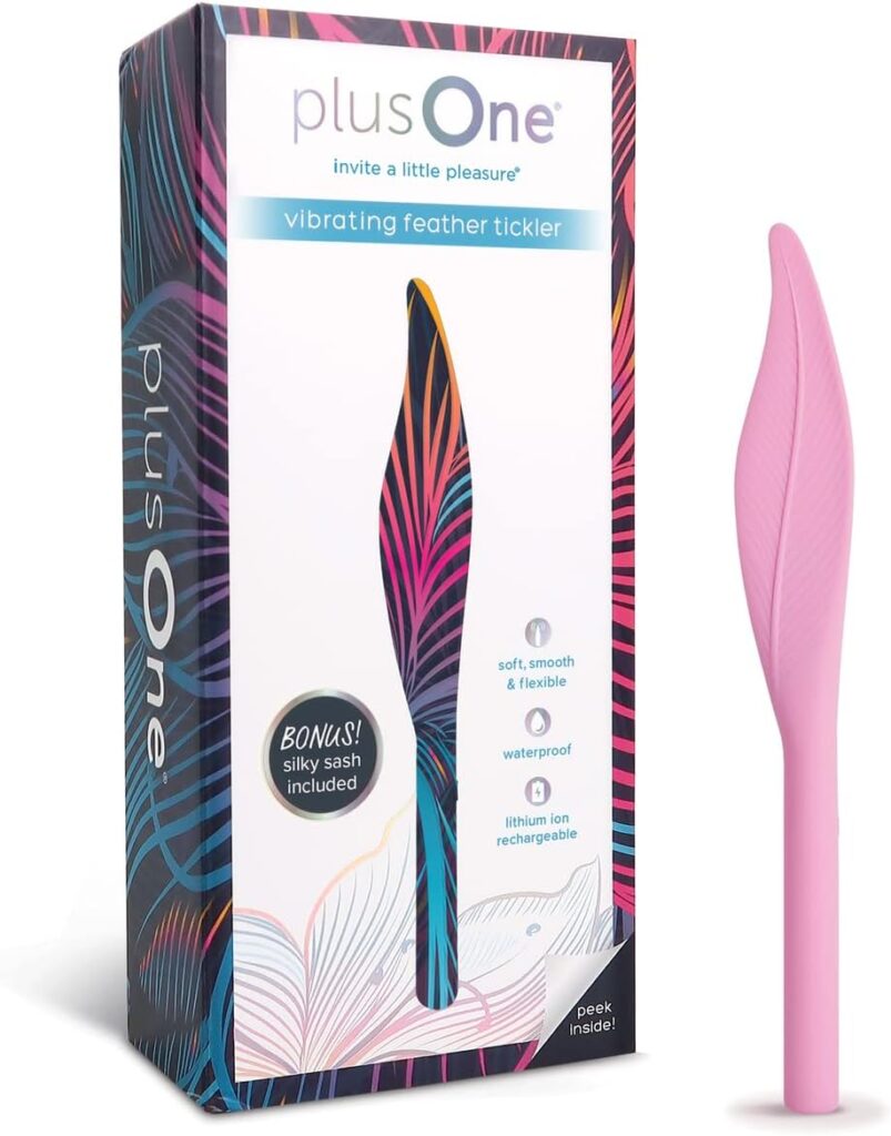 The Plus One feather is slim and powerful and made with body-safe silicone and a USB-rechargeable lithium ion battery for hours of use on a single charge. It is fully waterproof and features 5 different vibration settings. Quiet enough to use anywhere with anyone! Its very soft & flexible for delightful teasing sensations.